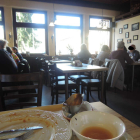 Im lichtdurchfluteten, etwas altbacken wirkenden Gastraum war allerhand los. Das „Saueressen“ schien viele Innereien-Freunde gesetzteren Alters angezogen zu haben. Gut, dass wir reserviert hatten. Etliche Ankömmlinge wurden trotz einiger freier Tische wieder weg geschickt. Die Küche schien wohl an ihrer Belastungsgrenze zu arbeiten. Unser Platz befand sich im Zentrum des Geschehens, direkt neben dem großen, wärmespendenden Kachelofen (ich saß später im T-Shirt da…) und dem „Mafia-Aquarium“ mit goldigen Fischen.