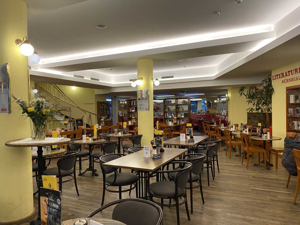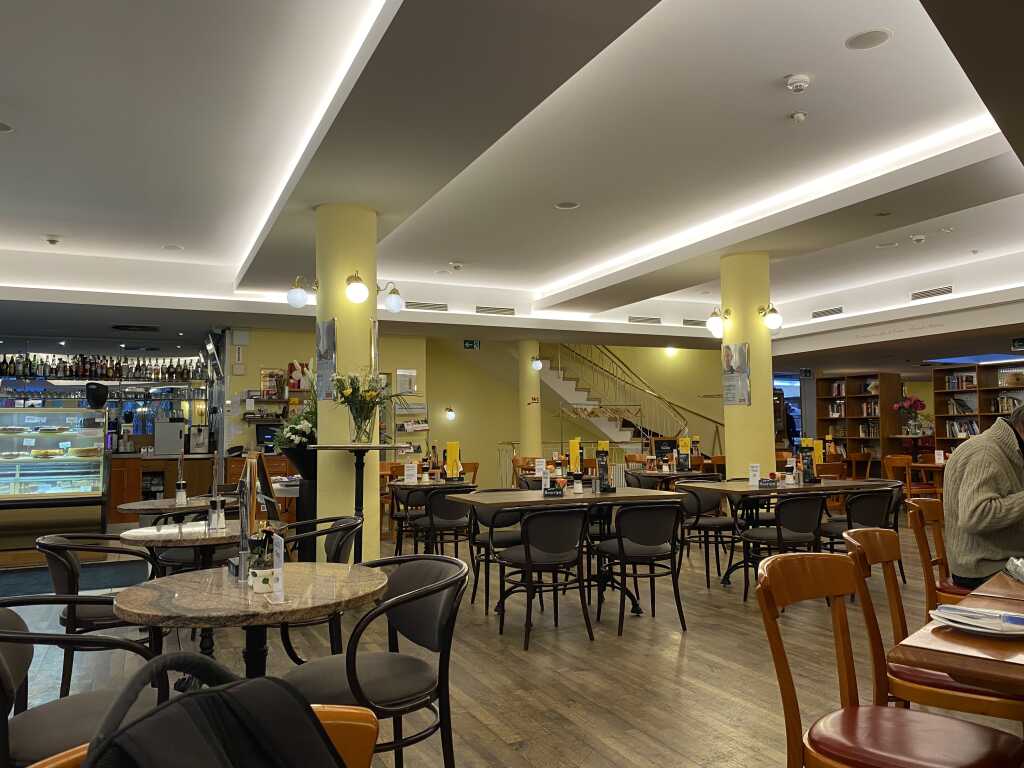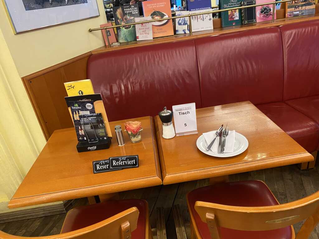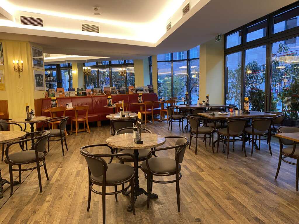 Alles ein wenig durchgemischt, aber es muss ja nicht alles immer einheitlich sein. Für ein Literatur Cafe darf es auch mal so sein. Wenn es sich füllt ist der Lärmpegel allerdings etwas sehr erhöht. Wir entscheiden uns für 4 Sterne