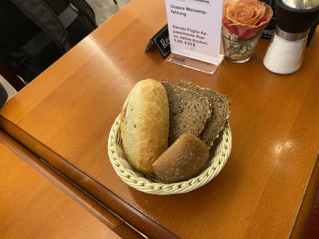 Im Brotkorb gab es ein normales Brötchen, es war schön knackig frisch und innen sehr weich. Ein rustikales Brötchen dass auch schön knusprig war , innen aber etwas fester, zwei Scheiben , sagen mal Sonnenblumenkerne Brot mit etwas Körnern und Haferflocken drauf. Es war sehr schön saftig. Alle Sorten im Brotkorb schmeckten sehr lecker.