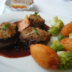 Als Küchengruß kam ein Körbchen mit sehr schmackhaftem Olivenbrot sowie einer Schale mit gefüllten grünen Pepperonis, eingeweichten getrockneten Tomaten und kleinen zwiebelförmigen roten Dingerchen, deren Name mir momentan nicht einfallen will. So wie er war hat uns dieser Küchengruß gefallen. Die gehaltvolle Maronensuppe war für mich eher ein Maronenbrei, schmeckte aber sehr gut. Äusserst zufrieden war meine Frau mit ihrem Hauptgericht. Eine Riesenportion Feldsalat (im Saarland eher als Mausohrsalat bekannt), dazu viel Feige, viel Walnuss und sehr viel Tranche vom Hirschrücken; zusammengenommen ergaben die Tranchen für fünf Euro eine größere Fleischmenge als ich sie mit meinen drei dicken Hirsch- Medaillons auf dem Teller hatte. Allerdings landete die ein und andere Tranche bei mir; schliesslich hatte meine Frau ja auch noch mit den extra bestellten Pommes Grenaille (die Dinger laufen am Niederrhein unter "Schmörkes" und sind in der Schale gegarte Kartöffelchen, die anschliessend noch kräftig durch die heiße Pfanne gezogen werden) zu kämpfen. Sie schaffte nicht alles und an ein abschliessendes Dessert war nicht zu denken. Mein Hauptgericht war spitzenmässig, mehr gibt es dazu nicht zu sagen. Einen Digestif versagte ich mir, obwohl es eine stattliche Anzahl feiner Whiskies gegeben hätte und das zu sehr moderaten Preisen. Wo findet man schon einen Lagavulin oder Oran für unter fünf Euro ?