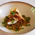 Hauptgang: Steinbuttfilet „Grenobler Art“, Cremespinat und Rotweinbutter.