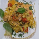 Die „Fettucine al salomone e spinaci“ waren reichlich, mit viel Lachs und Tomaten sowie Kräutern. Die Bandnudeln fest im Biss, der Lachs zart, alles ordentlich gewürzt.