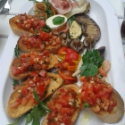 Als das Bruschetta und die Antipasti schließlich kamen, staunten wir nicht schlecht, man hatte mitgedacht, und alles auf einer großen Platte drapiert. Also diese ab in die Mitte und darauf gestürzt.