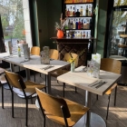 Die Einrichtung fand ich ansprechend und stilvoll. Aber die Plätze stehen für uns zu eng beieinander. An einem kleinen Zweiertisch ist kaum Platz für zwei Teller.