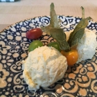 Zwei kleine Kugeln lagen nebeneinander. Dazwischen befand sich eine reife Physalis. Auch drei leckere Trauben lagen bereit.