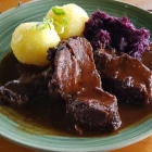 Mit meiner Wahl Rinderbacke in Dornfeldersauce, Rotkraut und Kartoffelknödel - € 23,00 war auch ich sehr zufrieden.