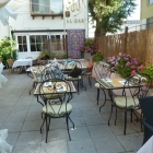 Das Restaurant war schnell gefunden. Schon die Frontseite wirkte sehr ansprechend und gepflegt auf mich. Der Eingang liegt jedoch nicht an der Straßenseite, man geht rechts neben dem Gebäude einen gepflasterten Weg entlang, der auf einen schön gestalteten Innenhof mit Blumenbänken und –kübeln führt.