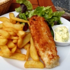 Mein Mann war von dem Dorsch begeistert. Innen saftig, außen in leichter Knusperpanade goldgelb gebacken. Die Pommes wohl die sehr gute Qualität, nicht Tiefkühl, sondern vakuumiert und Kühlschranktauglich. Knusprig, nicht fettig. Kleine, frische Salatbeilage, gute Remoulade.