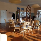 Da um diese Zeit fast alle Tische leer waren, konnten wir uns in dem Lichtdurchfluteten Raum mit seinen großen Fenstern selbst einen Platz aussuchen. Helle, freundliche Möbel, einige Raumteiler und eine Orchideensammlung auf den Fensterbrettern erwarteten den Gast. Von unserem Tisch hatten wir einen guten Blick in die offene Küche. Insgesamt erinnerte mich das ganze eher an eine Betriebskantine als an ein Restaurant. Auch der Geruch, wahrscheinlich durch die offene Küche, war etwas gewöhnungsbedürftig.