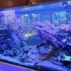 Ein Mitarbeiter begrüßte und begleitete uns zum reservierten Tisch. Und dieser war direkt an einem großen und sehr gepflegten Meerwasseraquarium. Das war genau der richtige Platz für mich!