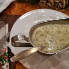 Wenn’s Kürbissuppe gibt, ist eigentlich klar was meine Frau isst – na klar, Kürbissuppe. So auch wieder hier. Diese Kürbissuppe hier wurde auf einem großen, tiefen Teller serviert und war sehr dickflüssig, fast schon breiig.