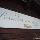 Vom Stil auch wegen des rustikalen Interieurs, könnten wir auch in einem Western Steakhaus, oder in einer Pfälzer Wanderhütte sein. Wir fanden es alle gemütlich, dazu die schweren polierten Holztische, wie in einer Pfälzer Weinstube. Das hat was, dazu der Blick auf den See. Wir fragten die Inhaber nach dem Bezahlen warum der Name Paradies. Man erklärte uns als man vor gut 15 Jahren hier das erste Mal eine Besichtigung gemacht hatte, meinte ihr Mann dass sei so schön wie im Paradies, daher der Name. und da hat er Recht (siehe Bild vom Außenbereich). Ich hatte die ganze Zeit das Bild von der gemischten Vorspeisenplatte vor mir, welches Herr M.R. aus S. geblitzt hatte. Wir bestellten quasi als Überbrückung diese. Einen Gruß aus der Küche bekamen wir nicht, nach 3 Minuten kamen aber dann schon vier extra warm gehaltene Vorspeisenteller. Zu Trinken sollte es bei mir ein Erdinger Weizen vom Fass sein, das war erstaunlich gut trüb und schmeckte so gar nicht lasch (ich hatte erst Bedenken wegen dem Fass), zum Hauptgang nahm ich gerne die Empfehlung der Inhaberin an, einen griechischen Merlot. Herr R. kritisierte etwas die zu kleine Weinauswahl. Ich finde, da ist für jeden was dabei. Der Fokus liegt auf griechischen Weinen, das wolle man sich nicht nehmen lassen, so die Inhaberin, das beste aus Griechenland muss ausreichen.