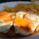 Wir entschieden uns gestern für frisches Gyros vom Spieß (4,50) ich mich für das Hacksteak mit Käse überbacken dazu gab es bei beiden Gerichten Pommes. uns beiden schmeckte das Essen, unabhängig vom Preis, sehr gut. Als Dessert gabs bei meiner Frau das Wochenangebot "Riwani mit Eis" für 2,50. Ich entschied mich aus der Karte für heiße Liebe 4 Kugeln Vanilleeis, dazu Sahne und heiße Himbeeren, eine Mörderportion, aber richtig lecker. Der Riwani Kuchen aus eigener Herstellung auch richtig gut.