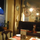 Die Einrichtung war recht rustikal. Auffällig waren eine kleine Sammlung von alten Schreibmaschinen um unseren Platz herum.