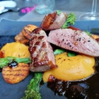 Von ihr wählte ich auch bei meinem letzten Besuch Ende März die bereits erwähnten Lammkoteletts. Sie kamen mit fein abgeschmeckter Bulgur-Taboulé und einem erfrischenden Minzjoghurt auf den Teller. Kleine Granatapfelkörner sorgten für die passende Süße. Eine echte „Vorspeisenfahrt im Orient-Express“ quer durch die Pfälzer Weinberge, die von einer Flasche 2012er „Les Frères“ (Cabernet Sauvignon-Merlot-Cuveé, 36 Euro) von Youngster Johannes Jülg aus Schweigen perfekt begleitet wurde. Ein Hammer-Wein! Wie so viele, die sich auf der wohl durchdachten Weinkarte Pfälzer Prägung befinden.