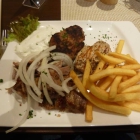 Die Pommes frites waren heiß, frisch und knusprig, das Tsatsiki hervorragend, sehr cremig und offensichtlich auf Joghurtbasis hergestellt. Die Gyrosstücke waren geschmacklich sehr gut, hätten aber für meinen Geschmack eine etwas intensivere Grillkruste vertragen können. Das Hacksteak war sehr gut gewürzt, die Knoblauchnote war nicht so vordringlich, wie übrigens auch beim Tsatsiki. Das Schweinesteak schließlich war nicht ganz so zart, wie ich es in anderen Restaurants bekommen habe, dennoch aber problemlos essbar und ebenfalls sehr gut gewürzt.