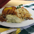 Für den Salatteller wurde neben grünem Salat noch Kartoffelsalat, Karotten und Krautsalat verwendet. Alles frisch zubereitet, die Salatsoße dürfte keine Fertigsoße gewesen sein sondern selbst gemacht, zumindest war sie geschmacklich sehr gut.