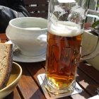 Erst einmal die Getränke. Ich nahm ein Hirschenblobb (3,60 Euro), ein hauseigenes Bier - ähnlich einem Märzen - von etwas dunklerer Farbe. Sehr süffig.