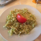 Der Krautsalat in einer Variante die wir so nicht kennen, aber sehr lecker war. Ein sehr intensiver Weißkrautgeschmack, aber irgendwie etwas mild und süßlich. Er hatte noch schön biss und war dezent ölig mit einer schönen Pfeffernote und dezent salzig. Ein paar knackige Gelberübenstückchen befanden sich noch mit drinnen. Wir sind mehr so die Krautsalat Fans mit Speck und Kümmel, aber der hat uns sehr gut geschmeckt.