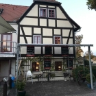 Das „Bärenhäus´l“ stand da zufällig an unserem Weg, das passte zu Hunger und Appetit. Das außen zu lesende Angebot war auch schon mal verlockend und lies auf ein erfolgreich abzuschließendes Kartenstudium schließen. Es ist ein offensichtlich uraltes (aber sehr schön erhaltenes) Gebäude. Uralt ist gut, stellte sich heraus, es hat 300 Jahre auf dem Buckel und war mal ein Bauernhaus. Es heißt „Bärenhäus´l“, weil ein Zirkusdompteur in den 30er Jahren des letzten Jahrhunderts mit zwei Bären dort wohnte. Ein aus meiner Sicht freundlich (geht eigentlich nicht) schauender Braunbär saß auf eine Säule an einem Eingang zum Grundstück auf dem das Fachwerkhaus steht.