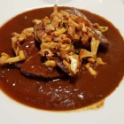 Butterzarte Scheiben vom Reh mit einer klassischen und einer aromatischen Sauce zum Niederknien. Die schmeckte nach ordentlichem Handwerk bei dem sicherlich auch Rot- und / oder Portwein mitspielen durften.