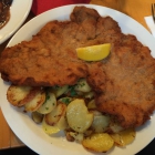 Hier gibt es die typischen fränkischen Spezialitäten. Bratwürste, Bohnakern, Schäufele, Schweinebraten ect. Wir wählten das Bohnakern mit Bauchspeck und Klos ( 8,90 € ) und ein Pfannenschnitzel mit Bratkartoffeln ( 9,50 € ). Die Spezialität, das Bohnakern sind dicke Bohnen in einer süß-saueren Bratensauce mit einem Streifen Bauchspeck und Kartoffelkloß. Geschmacklich durchaus gut. Der Kloß war leider nicht locker genug. Der Doppler sehr dünn geklopft und paniert, in der Pfanne gebraten, war sehr zart und gut. Die Bratkartoffeln ebenfalls in der Pfanne gebraten. Ein harmonisches Gericht.