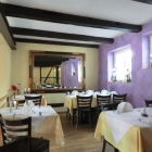 Die Einrichtung des Restaurants ist stilvoll aber modern. Die dem Marktplatz zugewandte Wand und auch die gegenüber liegende sind in zwei verschieden hellen Violett-Tönen in Wischtechnik gestaltet, die beiden anderen Wände sind strukturlos hellgelb gehalten. Im Erdgeschoss ist der Fußboden aus anthrazitfarbenen Fliesen, auf der Empore ist es Parkett. An der Decke gibt es zahlreiche Balken aus dunklem Holz, die von einer Stahlkonstruktion gestützt werden, die auch die Empore trägt. Zwei enorme Kronleuchter hängen in dem nicht von der Empore eingenommenen Bereich von der Decke herunter. Das gesamte Mobiliar ist aus dunklem Holz, die Stühle haben schwarze Sitzpolster. Die Tische waren mit zartgelben Stofftischdecken und weißen Überdecken bedeckt, darauf gab es je eine Kerze in silberfarbenem Leuchter, eine Blüte in einer Glasvase, Salz- und Pfefferstreuer und Stoffservietten an den Plätzen.