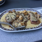 Über die Madagaskar-Suppe war ich zunächst etwas überrascht, weil grüne Pffferkörner nich erkennbar waren. Auf Nachfrage wurde mir bestätigt, dass die richtige Suppe serviert wurde. Die Einlage bestand aus vielen Nudeln, grünen Bohnen und ein paar grünen Pfefferkörnern. Geschmacklich war die Suppe in Ordnung. Als das Hauptgericht, die Schweinemedaillons mit Käse überbacken serviert wurden, haben wir scherzhaft die Frage gestellt, ob diese Portion wohl reicht. Die Portion hätte locker für zwei Personen gereicht. Es wurden drei schöne, große Medaillons, die gut gebraten, mit Tomaten belegt mit reichlich Sahnesauce und goldgelben Käse überbacken waren, serviert