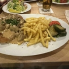 Also Männe wählte Schweineschnitzel Jäger Art, zu 19,80 Euro.