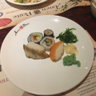 Der Reis war jetzt nicht so schlecht mit einer leichten Säure Note. Die Fische eher sehr geschmacksneutral und Gurke war halt eine Gurke. Dazu wurde Wasabi und eingelegter Ingwer angeboten die auch nicht so richtig überzeugen konnten vom Geschmack. Ja etwas schärfe war vorhanden. Die Algen hingegen waren sehr lecker und auch schön salzig nach Meer schmeckend.