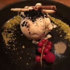 Salzkaramelleis mit karamellisierten Oliven, dass mit dem kreativ hatten wir ja schon..........aber genau deswegen hatten wir dieses Dessert erwählt aus der verlockenden Auswahl im Anker. Salzkaramell ist super, und wenn Oliven karamellisiert werden, kriegen sie einen Salmiakton(Lakritz) im Aroma, woran meine Frau heftig litt, ich nicht! Sehr lecker und begleitet von einem restsüßen Riesling.....da hatte ich doch noch ein bisschen was von meinem Lieblingswein.