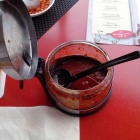 Ein dazu geordertes scharfes Chiliöl kam in einem kleinen Deckelgläschen. Das hinterließ einen etwas gespaltenen Eindruck. War es doch fast leer und damit wahrscheinlich schon an vielen Tischen präsent betrachte ich dies als nicht ganz so ästhetisch und über das Andere was dies impliziert will ich nicht unbedingt nachdenken. Aber es konnte was und schmeckte. Das Capsaicin wird den Rest hoffentlich erledigt haben. Mein Befinden am Tag danach war jedenfalls entwarnend.