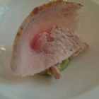 Die Beurre blanc wurde stilvoll erst am Tisch eingegossen. Farblich ein ganzes Stück hinter dem Thunfisch Teller, geschmacklich aber wieder weit vorne. Ein perfekt gegarter Heilbutt, aromatisch und mit zartem Biss. Der Rettich war zu Röschen geformt und mit Karotten-Kaviar gefüllt, die Radieschen hatten ihre Schärfe eingebüßt. Das Erbsenpüree etwas wenig aber sehr aromatisch und gut schmeckend. Die Beurre blanc war super, Waldmeister habe ich aber nicht wirklich herausgeschmeckt. Dennoch ein stimmiger zweiter Gang.