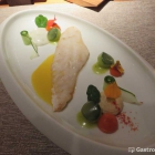 Nach angenehmer Pause folgt der Hauptgang. St. Pierre, Paprika, Kichererbse: St. Pierre; gebraten / Paprika: Sud, geschmortes Püree / Kicherebse: Hummus / Gurkenröllchen, Joghurt Dip …..Schatzl freut sich auf ein Irisches Short Rib, Erbse, Süßkartoffel: Irisches Short Rib: gepökelt und geschmort, BBQ Jus / Erbse: Püree, gepuhlt, Erbsenspargel / Süßkartoffel: gebratene Taler, Chip, Relish / Johannisbeere, Sour Creme.