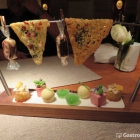 Für andere mag Fisch und Fleisch das Highlight eines Menüs sein, meine Stunde schlägt jetzt. Auf dem Kärtchen vor mir steht nun Pre Dessert: Holunder, Karamell, Karotte. In einem bauchigen Glas bettet sich auf einem Granité aus Holunder (der mit einem Schlückchen Champagner angegossen wird) ein kleines Küchlein mit frittierten Karotten und davor liegt auf den ersten Blick völlig harmlos ein Karamelleis-Lolli, der mich als Dessert-Junkie in den siebten Himmel katapultiert.