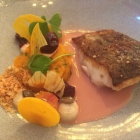 Farbenfroh startete das Menü mit Makrele, die in Salzlake gebeizt und dann geflämmt wurde.