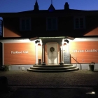 In einem ehemaligen Freibad, 1926 im Stadtpark errichtet und mittlerweile unter Denkmalschutz stehend, wurden die Räumlichkeiten zu einem ansehnlichen Restaurant umgebaut. Über eine langen geschotterten Weg geht man durch einen schönen Park und trifft auf das rot-gestrichene Gebäude. Es ist u-förmig – wie eben die Freibäder früher waren – um das Wasserbecken gebaut. Das Wasserbecken wird nunmehr als Event-Veranstaltungsbereich (Konzerte usw.) genutzt. Die Freifläche davor bestuhlt mit weißen rustikalen Tischen und Bänken dient als Freiluftgastronomie. Insgesamt ein sehr einladender Eindruck.
