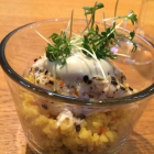 Beide Fische schön zart und saftig, leicht glasig, ebenso top gegart die Garnelen und die Scallops, so liebe ich Fisch und Krustentiere. Der Rotbarsch auf der Haut gebraten, so dass unter der Haut leider noch etwas Trananteil vorhanden war.
