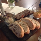 Vorab: Hausbrot & Dip (4,50 €), bestehend aus zweierlei frischem Brot mit zweierlei Dips (Tomatencreme und Aioli), beide sehr gut schmeckend, auf einem Schieferbrett serviert. Ein gelungener Auftakt, der die Wartezeit bis zum Servieren der Speisen gut überbrückte.