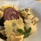 Das Fleisch ganz zart, mit wunderbar fast orientalisch indisch schmeckenden Gewürzaromen (u. a. Tandori, Chili, u.a.m.) Dazu ein herrlicher leichter Kartoffelschaum, begleitend von einer kräftigen Portweinsoße und geröstetem Serranoschinken. Der Chefkoch Oleg Kravchuk kam an den Tisch und hobelte kräftig einige Scheiben vom schwarzen Perigord-Trüffel über diese Speise. Meine Begleitung war von dem Gericht vollkommen hingerissen.