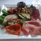 Die Vorspeisen waren bereits ein sehr guter Ausblick auf die Stärken der Küche. Konzentriert auf die hervorragende Qualität und den Geschmack der Zutaten die mit wenig schmückendem Beiwerk präsentiert wurden. Eine Küche für Puristen. Auf dem Antipastiteller fanden sich pikante Salami, Parmaschinken, gegrilltes Gemüse, eingelegte Pilze und grüne Oliven. Das Thunfischcarpaccio war fein abgeschmeckt, sehr zart du saftig. Eine echte Alternative zum bekannten Rinderfilet. Vom Tomatensalat mit Mozzarella habe ich nur den Büffelmozzarella probiert, der ein angenehmes, nicht zu strenges Aroma hatte.