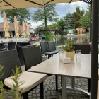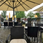 Ein junger Mann empfing mich freundlich und bejahte meine Frage nach einem Tisch zum draußen speisen. Dunkle Wolken ballten sich zusammen, als ich Platz nahm.