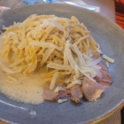 Unsre Große hatte sich die Casarecce al Pesto di basilico e Mozzarella di Buffala, die Gedrehten Nudeln mit Basilikumpesto und Büffelmozzarella. Auch hier wieder auf einem großen Teller ein großer Berg von Nudeln, wo diese nun gedreht waren, erschließt sich mir nicht ganz.