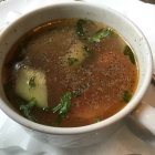 Vorspeise: Minestrone (wunderbare kräftige Brühe mit knackigem und frischem Gemüse),