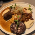 Dazu Selleriepüree und Perlzwiebeln für 23,50 Euro. Auf die Komposition aus Gegrilltem, Geschmortem und Blutwurst muss man erst einmal kommen! Ich war begeistert. Da nimmt es kein Wunder, dass ich für die auch großzügig portionierten Hauptspeisen 4,5 Sterne gebe. Beim PLV ziehen die im Vergleich zu den Hauptspeisen ambitioniert bepreisten Vorspeisen die Bewertung einen halben Stern nach unten.