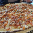 Unsere Wahl fiel auf den Bruschetta-Flammkuchen (8,50 Euro) sowie das eingangs erwähnte Fisch-Risotto (als Quick-Lunch für 6,90 Euro). Weniger war an diesem Mittag mehr. Und abends stand ja noch der Besuch des vom „Borgfeld-Bistronauten“ empfohlenen Ristorantes „La Calma“ auf der kulinarischen „To-Do-Liste“. Das Risotto war schön schlonzig, während die Reiskörner noch leichten Biss hatten. Mit leichter Fenchelnote und herrlich saftigen Fischstückchen ein absolut schmackhafter Mittagstisch, dessen Preis mehr als gerechtfertigt war. Gespannt war meine Begleitung auf ihre Italo-Elsass-Kombi aus dem Backofen. Eine ungewöhnlich fruchtige Flammkuchen-Variante, die üppig belegt den Weg auf unseren Tisch fand. Geschmacklich gewogen und für lecker befunden. Der Sauerrahm-Belag duftete leicht nach Knoblauch, während die roten Zwiebelstückchen zusammen mit den Tomatenwürfeln für sommerliche Frische sorgten. Mein geistiges Auge saß beim Anblick dieses Sommeressens wohl schon draußen auf der Terrasse und schlürfte einen gut gekühlten Sauvignon Blanc „Kaitui“ vom Ellerstädter Winzer Hotzenplotz Markus Schneider.