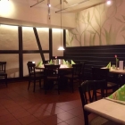 Der Gastraum ist zweigeteilt: Ein großer Gastraum mit niedrigen Balkendecken im Fachwerkteil des Gebäudes, ein weiterer großer Gastraum im angebauten Wintergarten.
