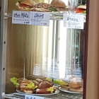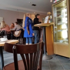 Anschauen kann man sich alles vorn an der Bar, teilweise in einem temperierten Glasschrank. Innen geht es teilweise recht eng her, das Gefühl wird noch verstärkt durch die vielen Laufkunden, die ohne Sitzplatz etwas auf die Hand mitnehmen oder auch Kaffeespezialitäten oder andere gute Dinge einfach einkaufen.