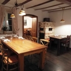 Frau Kolley führte uns in die Nonnenstube (das ganze Gebäude stammt aus dem 11.Jahrhundert, war zunächst ein Äbtissinnenhaus und später dann eine Zehnscheuer, bevor es um 1800 schliesslich zur Weinstube bzw. zum Restaurant wurde, was es bis heute geblieben ist und ), wo sie uns den Eckbanktisch zuwies. Am Tisch gegenüber sassen zwei mittelalte pfälzische Pärchen, die sich angeregt über ihre Patienten-Erlebnisse in der Heidelberger Uniklinik und anderen Krankenhäusern austauschten. Das ein und andere Gläschen musste bereits ihre Kehlen befeuchtet haben, denn die Schilderungen waren teilweise recht drastisch/sarkastisch. Der letzte Tisch in der Nonnenstube wurde besetzt, als wir bereits bei den Vorspeisen waren; ein recht schnöselig wirkender Herr in deutlich jüngerer weiblicher Begleitung, der aber nicht weiter störte.