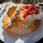 · 1x Hausgemachten Windbeutel „Katharinenhof“ mit Sahne und frischen Erdbeeren für 8,90 €, zusätzlich mit einem Schuss Eierlikör für 1,00 €